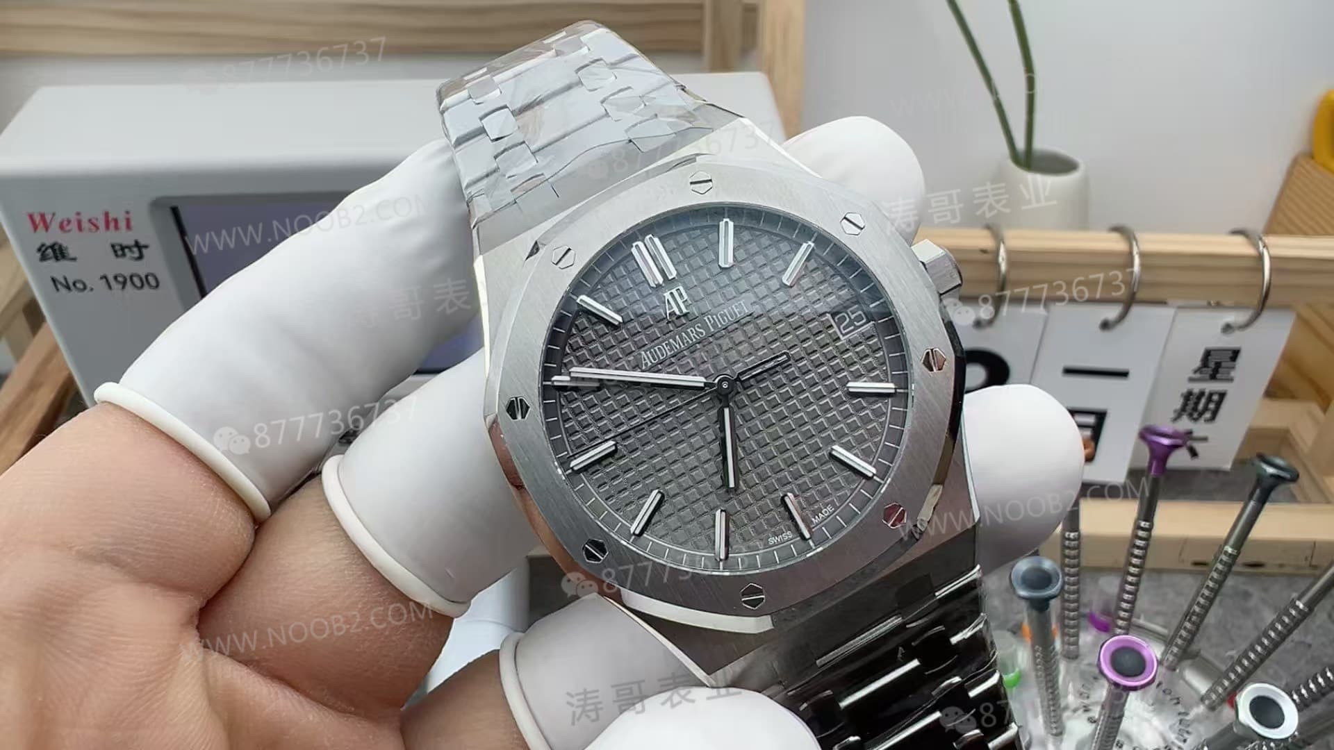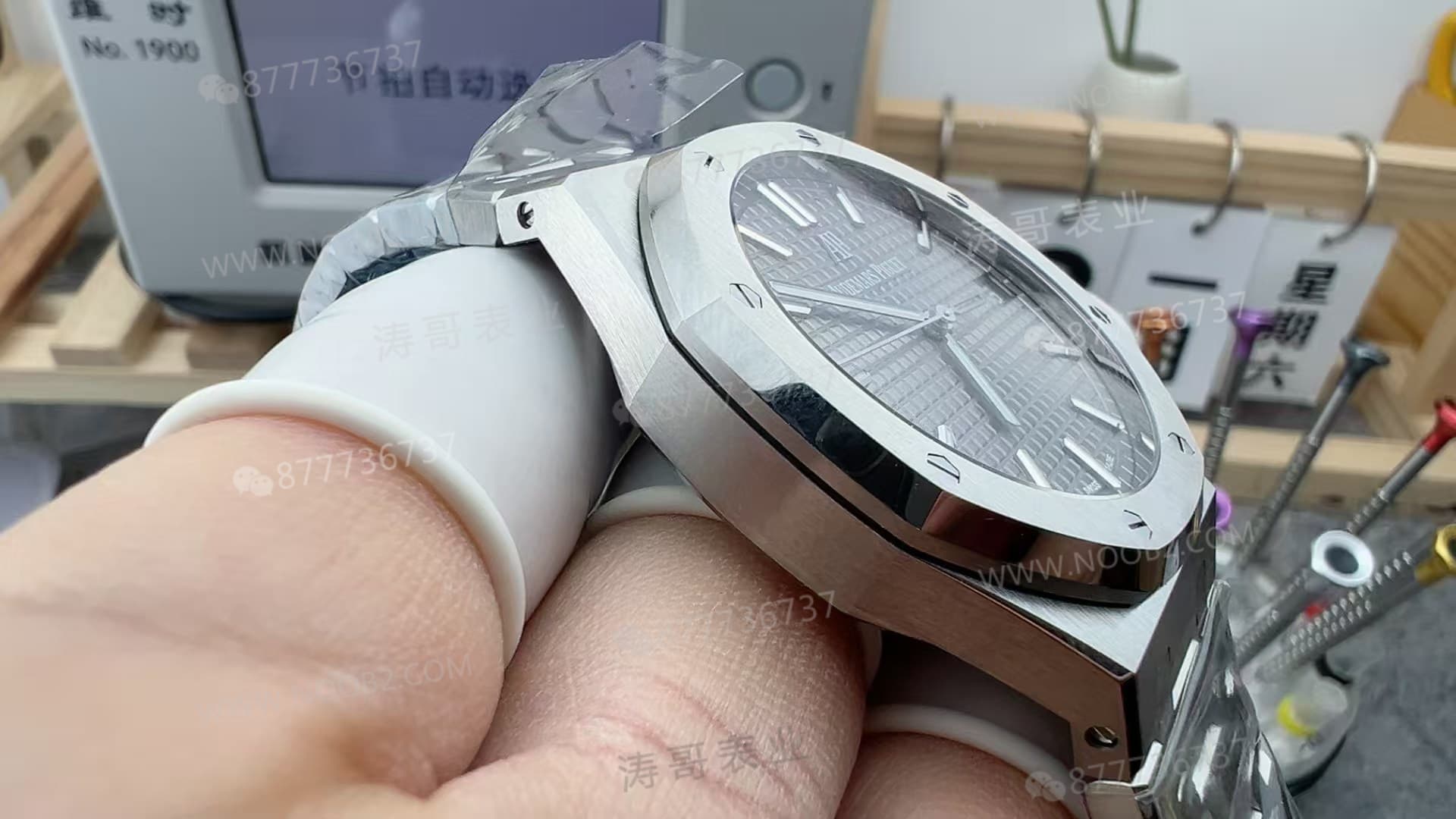 大家好,我是涛哥,热衷于普及腕表知识,真假对比,拆解评测,做您玩表之路的导航者,助您玩表不迷路。今天涛哥跟大家聊一聊关于VS的新品,皇家橡树15500系列VS终于算是做AP了。因为VS它一直都是没有做AP皇家橡树的款式,都是做欧米茄,还有沛纳海那一些。然后现在的话他是开始对AP下手了,目前的话他是只有做15500而已,然后之后的话也会去做15400、15510,包括15703,估计他都会去做。然后这个款式的话,我从第一眼就拿在手上的第一感觉确实它是做的挺好的。